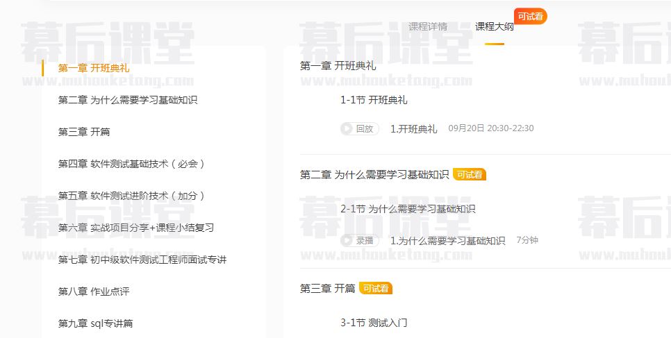 本课程项目实操知识点:一、需求分析-用例编写阶段:1、需求文档讲解2、需求分析-现场互动提问3、测试方案、资源投入分析讨论4、用例编写(作业)5、bug提报(作业)6、测试报告编写(作业)。二、集成、系统、回归-项目上线阶段:1、用例点评分析(典型作业分析)2,典型bug详解:前后端缺陷,3、典型bug详解:数据库落表类缺陷4、测试报告点评分析(典型作业分析)。学习收获1.熟悉真实测试项目流程;2.熟悉日常项目中软件测试工作节奏和重点内容;3.强化Bug初步地位和数据查询的方式;4.掌握真实项目的测试报告写法和分析;