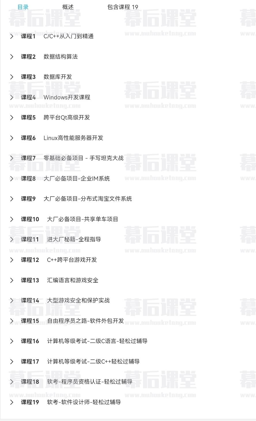 课程目录:课程大纲↓(共19门课程)