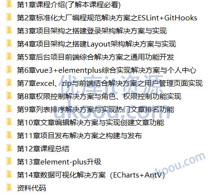 基于Vue3最新标准,实现后台前端综合解决方案课程目录