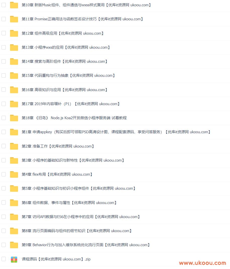 纯正商业级应用-微信小程序开发实战课程目录